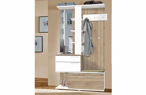 Компактный и функциональный комплект April представлен в трех цветовых сочетаниях, укомплектован зеркалом, полками и выдвижными ящиками, вешалками для верхней одежды, а также удобным мягким элементом для сидения. Идеальный вариант для небольшой прихожей.Высота: 2080 ммДлина: 1155 ммГлубина: 360 мм