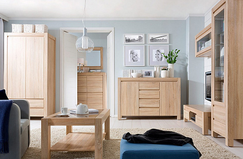 Гостиная Август БРВ (сонома)Модульная программа August – одна из самых интересных и востребованных коллекций от мебельной фабрики БРВ. Коллекция включает в себя более 20 элементов интерьера для обстановки спальни и гостиной комнаты. Изготавливается коллекция в двух цветовых решения – дуб сонома и венге.Гостиная Август – это удачный вариант для ценителей лаконичных форм и современного стиля в интерьере. Можно смело сказывать, что это действительно оригинальная мебель со своим характером, которая придаст особый шарм вашей гостиной.В изготовлении этой коллекции использованы уникальные технологии и конструктивные решения, не имеющие аналогов в Беларуси: отсутствие ручек и система открывания нажатием, особая конструкция, придающая мебели массивный внешний вид и прочие. При этом, цена на модульную гостиную Август совершенно доступно для каждого покупателя. Убедитесь в этом сами.