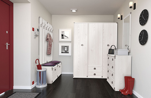 Коллекция Индиана не похожа ни на классическую, ни на современную мебельную моду. Имитация состаренного дерева, металлические накладки на углах, ярко выраженная древесная структура - далеко не все отличительные особенности коллекции. Благодаря широкому ряду элементов системы вы без труда обустроите прихожую.
