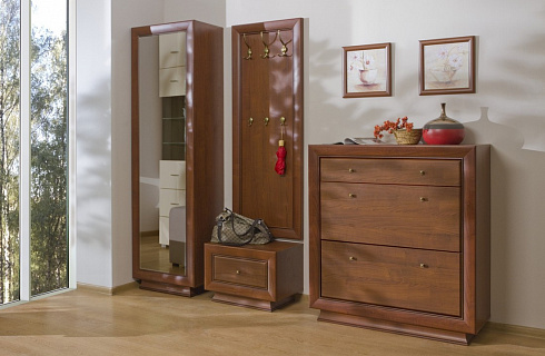 Largo Classic - эксклюзивная классическая модульная система в цвете "патинированная вишня итальянская". Выпуклые фасады с декоративной рамкой, аккуратные латунные ручки подчеркивают характерные особенности системы. Вертикальные элементы оборудованы массивным, фрезерованным цоколем.