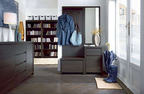 Стильная и функциональная коллекция мебели. Уникальный дизайн, сочетающий все современные тенденции: геометрически правильные формы, отсутствие ручек, востребованный древесный цвет. Большой выбор элементов поможет создать динамичный интерьер в прихожей.Компактный шкаф для верхней одежды в сочетании с зеркалом и комодом представляют собой стандартный набор мебели в прихожей - в том месте вашего дома, где нехватка пространства ощущается особенно остро. А если уж вы счастливый обладатель крупногабаритной прихожей или квартиры-студии, то смело дополняйте интерьер вешалкой и тумбой для обуви - в коллекции Каспиан обязательно найдется мебель, которая подойдет вам и по размерам, и по цветовому решению.