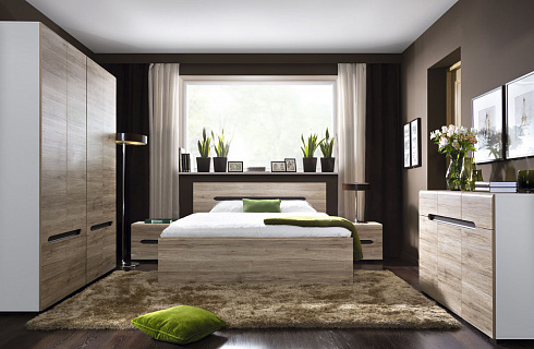 Azteca отражает новые тенденции в мебельной моде: древесные глянцевые фасады, контрастирующие с декоративными вставками цвета "дуб венге Магия", плавные линии, футуристические элементы, оригинальный способ открывания дверей и огромное количество элементов в составе системы помогут создать неповторимый интерьер спальни.Популярность сейчас набирает удобная, практичная, но не громоздкая мебель. В коллекции Azteca вы найдете огромное количество шкафов со стеклянными витринами, навесных элементов, тумб и комодов, которые гармонично впишутся в интерьер.