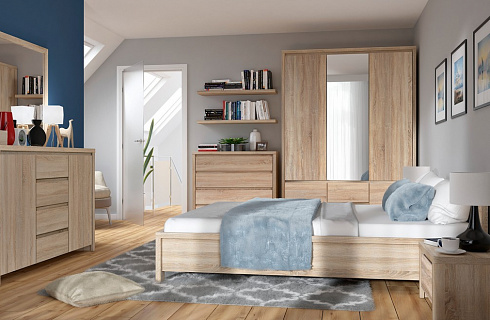 Стильная и функциональная коллекция мебели. Уникальный дизайн, сочетающий все современные тенденции: геометрически правильные формы, отсутствие ручек, востребованный древесный цвет.Большой выбор элементов поможет создать динамичный интерьер в спальне.